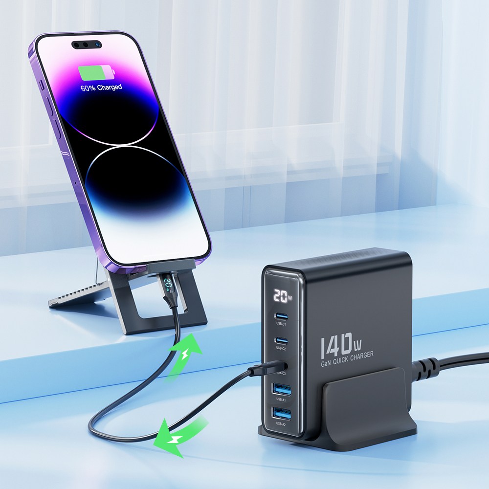 Toocki 투키 GaN 140w LED 디스플레이 3C2A 5포트 C타입 PD3.0 PPS 초고속 멀티충전기